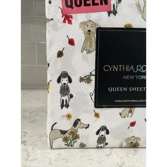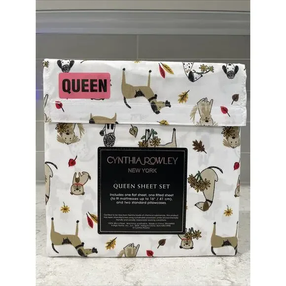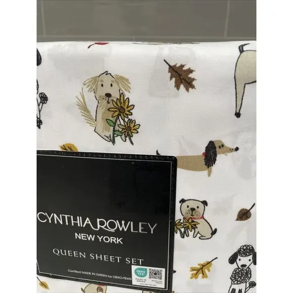 Adorable FALL DOGS queen size Sheet Set Cynthia Rowley assorted dog breeds with falling leaves and sunflowers on bright white ground. In self-fabric Velcro close case.ReturnsWe hope you will love your purchase, however if you need to return it, we have a 30-day return policy. Returned item has to be in its original condition. Buyer is responsible for return shipping costs. After receiving the return, we will make a replacement depends on our available stock, if not available, a refund will be issued. 100% money refund!FeedbackFeedback is very important for everyone participating in the eBay community. Please kindly leave us positive feedback once you get the package and you’re satisfied, and we will always leave you the same.Please do not leave negative or neutral feedback, if there is any problem with your product, please contact us first, I am sure everything could be solved by communication. We will offer you a satisfying result. We are serious seller, and we always respond to our customers. Thank you!